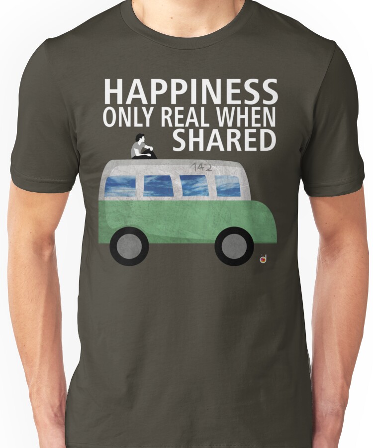 from the Artist: Unisex T-Shirt. Great quote by Alex Supertramp: Happiness only real when shared. I recommend to print it on a dark t-shirt or hoodie, so the image is well visible.