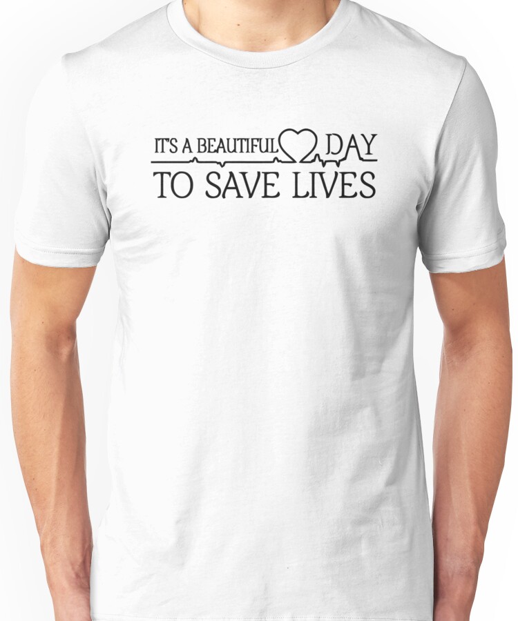 It’s A beautiful Day To Save Lives Unisex T-Shirt NOW $19.5 October 13, 2017 by admin Click Here to Purchase at: $19.5 from the Artist: Unisex T-Shirt. It’s A beautiful Day To Save Lives