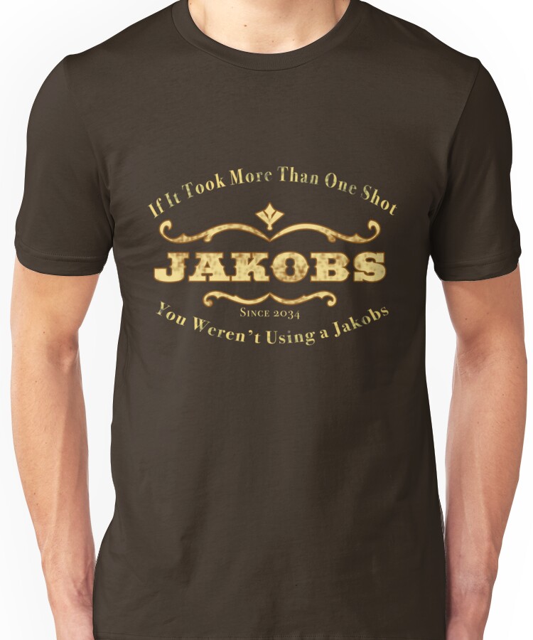 from the Artist: Unisex T-Shirt. Do you love blowing your off enemies heads? Pulling the trigger as fast as you can? Do you just not care at all about elemental effects? Then proclaim your preferences with this Jakobs apparel!