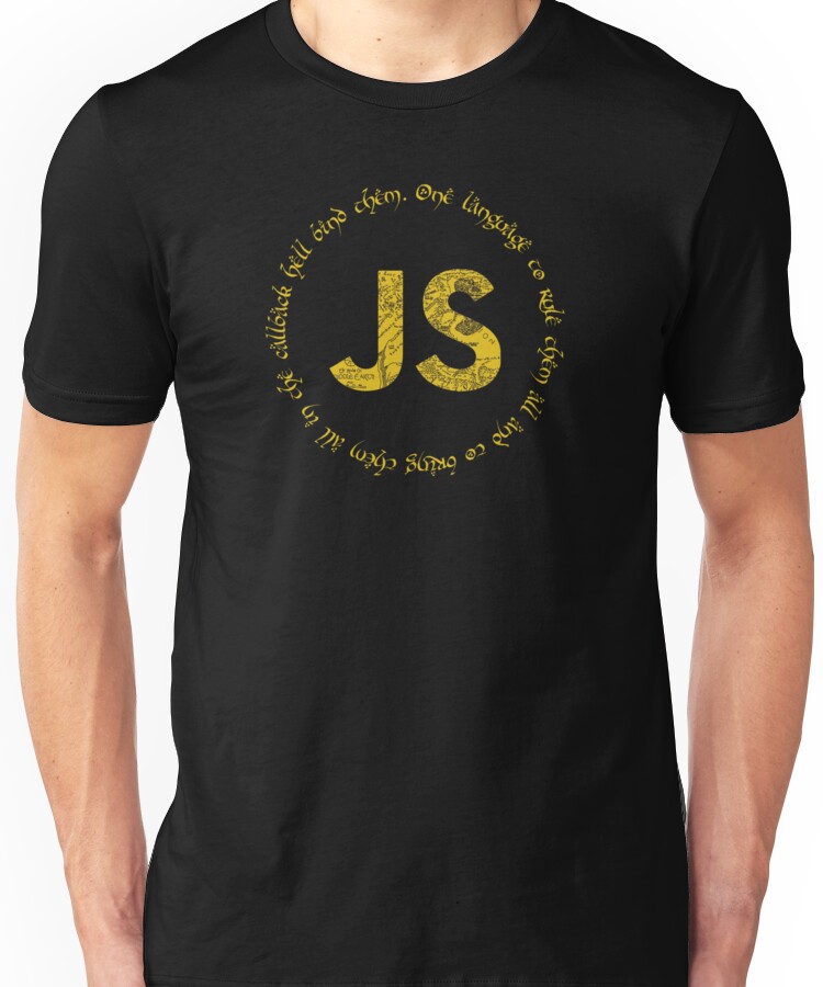 from the Artist: Unisex T-Shirt. Mixin between JavaScript Pogramming language and The Lord of The Rings