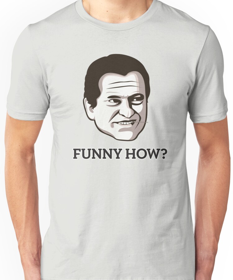 from the Artist: Unisex T-Shirt. *JOE PESCI “FUNNY HOW” T-SHIRT – YOUR GATEWAY DRUG TO AWESOMENESS* Joe Pesci is a man of many talents, most notably being the fucking man and killing people for no reason at all. In fact, they based a movie on Joe Pesci’s real-life antics called ‘Goodfellas’ which went on to win a bunch of awards and make IMDb’s _Greatest Movies Of All Time_ list. So if you’re you looking for a shirt that does the talking for you. Then move your mouse cursor over to the right and click that ADD TO CART button now. Your torso will thank you for it. *Not convinced you should buy this shirt yet? Then check out some of these quick Pesci facts:* * FACT: Nobody fucks with Joe Pesci. Nobody. * FACT: Joe Pesci wasn’t born, he shot his way out of his mothers womb. * FACT: The Frankie Valli song “Walk Like a Man” was written about Joe Pesci and is based on a true story. * FACT: When JFK told NASA they had 8 years to put a man on the moon they told him to “get the fuck outta here”. J