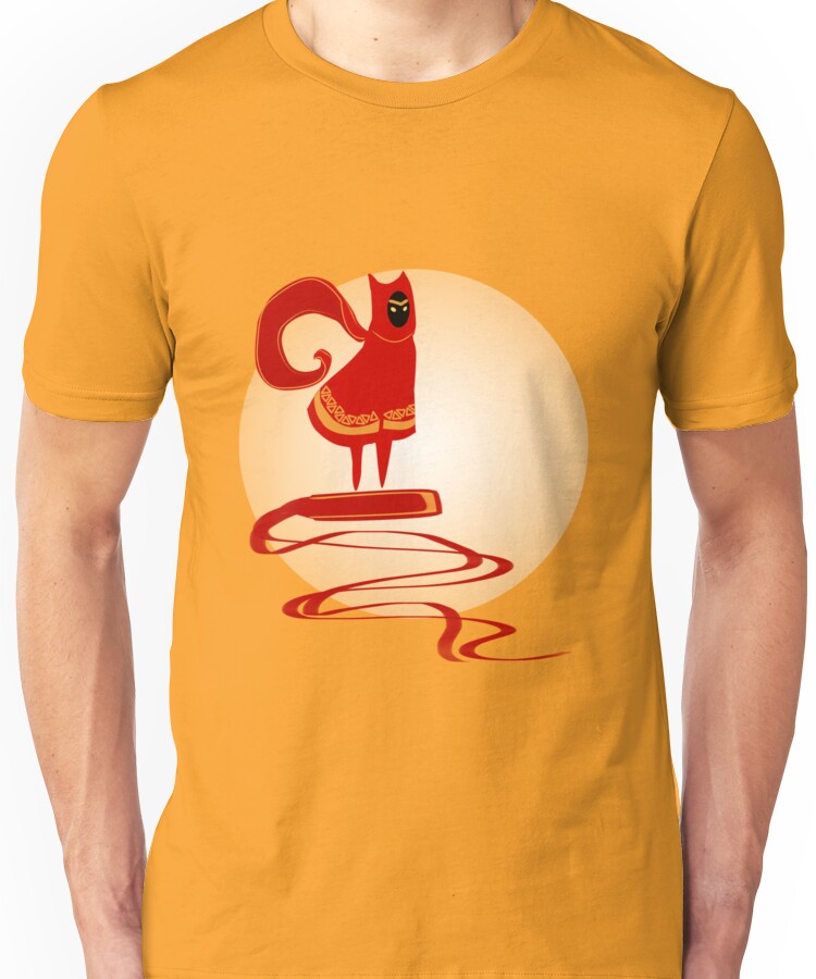 from the Artist: Unisex T-Shirt. Teeshirt inspired by a beautiful game called ‘Journey’. I cannot recommend playing this game enough! (It can be download through the Playstation Network!) It’s more of an experience than a game – anyhow, here’s a Journey inspired teeshirt by a massive fan 🙂 NOTE: I’m not going to disallow this design on white teeshirts/hoodies etc, but I do have to point out that the white on the design doesn’t show up on the white tees etc (obviously -__-) so…your call, but I think it looks much better when you can see it! Artwork is completely drawn by me ^_^ Much love to you all!