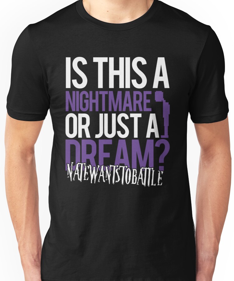 Just a Dream – NateWantsToBattle Unisex T-Shirt NOW $19.5 October 13, 2017 by admin Click Here to Purchase at: $19.5 from the Artist: Unisex T-Shirt. official shirt design with natewantstobattle lyrics!