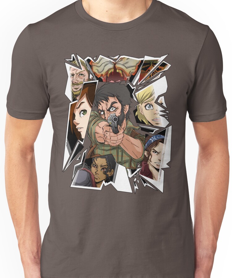 from the Artist: Unisex T-Shirt. An illustration of the main characters of Naughty Dog’s The Last of Us, depicted through shattered glass.