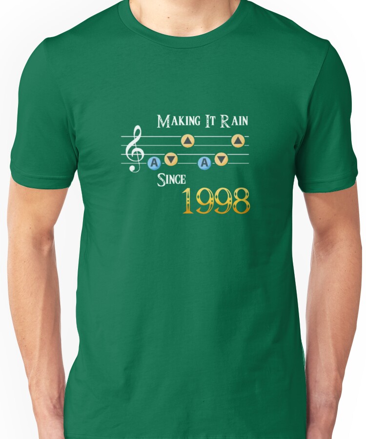 Legend of Zelda Ocarina of Time: Making It Rain Since 1998 Unisex T-Shirt NOW $19.5 October 13, 2017 by admin Click Here to Purchase at: $19.5 from the Artist: Unisex T-Shirt.