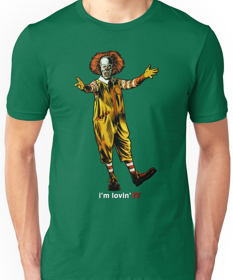 Lovin’ IT. Unisex T-Shirt NOW $24.38 October 13, 2017 by admin Click Here to Purchase at: $24.38 from the Artist: Unisex T-Shirt. A mash-up of 2 evil clowns.
