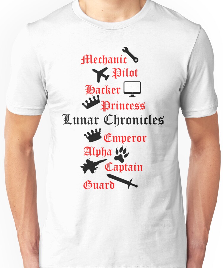 from the Artist: Unisex T-Shirt. The nicknames for characters from The Lunar Chronicles by Marissa Meyer