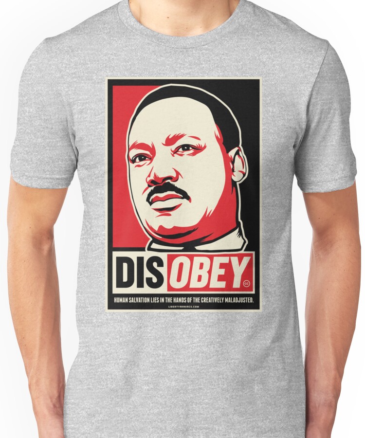 from the Artist: Unisex T-Shirt. “Human salvation lies in the hands of the creatively maladjusted.” – Martin Luther King Jr.