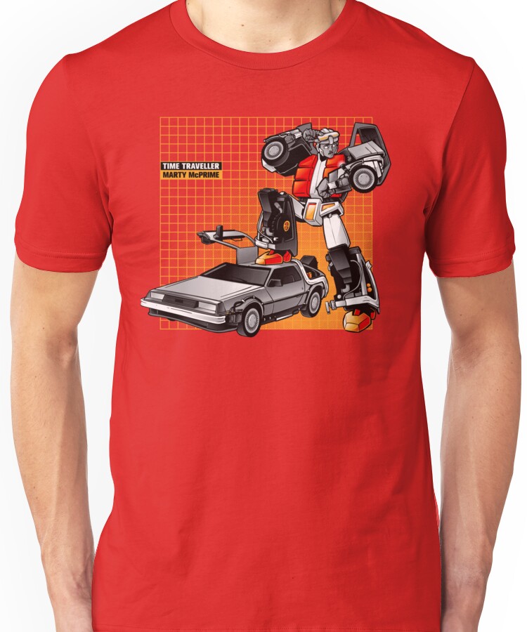 from the Artist: Unisex T-Shirt. Great Scott! This time traveller is… somewhat heavy. A toy the eighties so desperately needed. If only there were a way to somehow… go back! “PRINT VERSION is available right HERE”:http://www.redbubble.com/people/obvian/works/9343182-marty-mcprime-print-version …Okay, I’ll stop yelling.