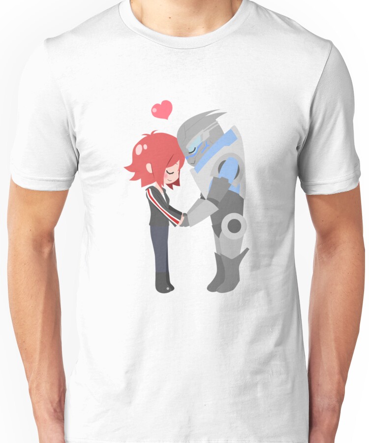from the Artist: Unisex T-Shirt. Everyone’s favorite couple! Commander Shepard and Garrus Vakarian.