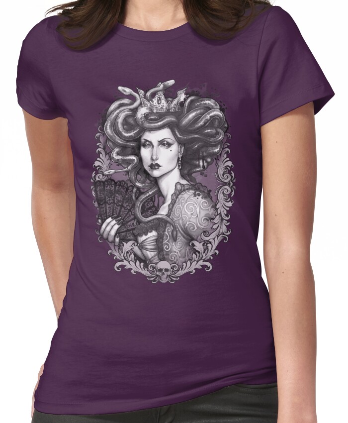 from the Artist: Women’s T-Shirt. My version of my favourite greek myth, Medusa, with a baroque feel. https://www.youtube.com/watch?v=7y0aOtok7VM ? Available as T-shirt August the 21th in http://teevillain.com/ for $11 only 24 h. “O Medusa velut luna statu variabilis, semper crescis aut decrescis; vita detestabilis” Lyrics version taken from Fortuna Imperatrix Mundi, Carmina Burana
