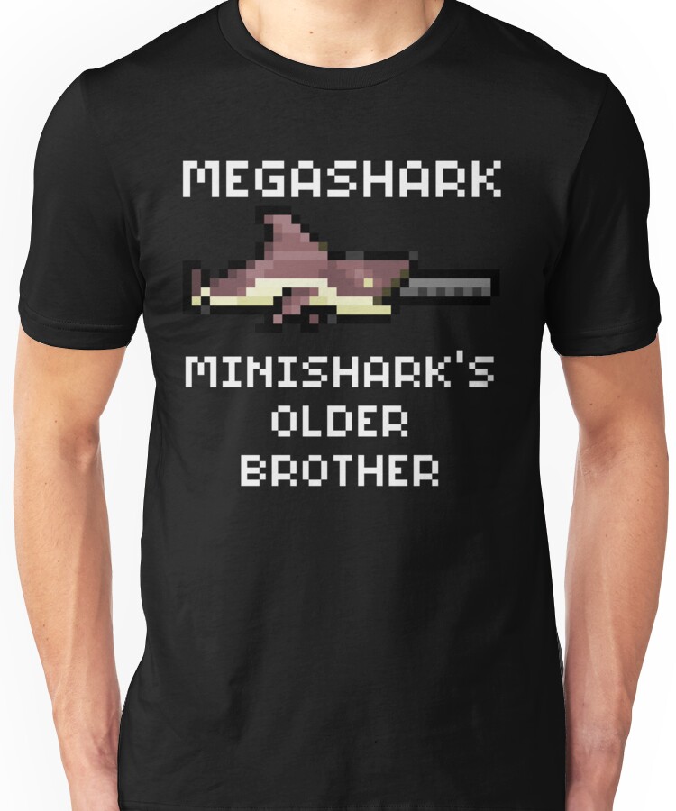 from the Artist: Unisex T-Shirt. Megashark from Terraria. Same as my other design, just white font for darker clothing