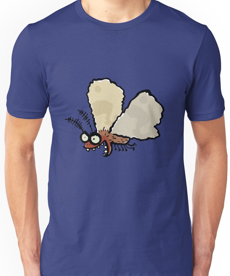 from the Artist: Unisex T-Shirt. Lock your wardrobes and save your socks! Melli, the malicous moth is on the loose – and she shows no mercy, be it muslin, wool or silk! (This was on the RB “found” page on nov 8, 2015)