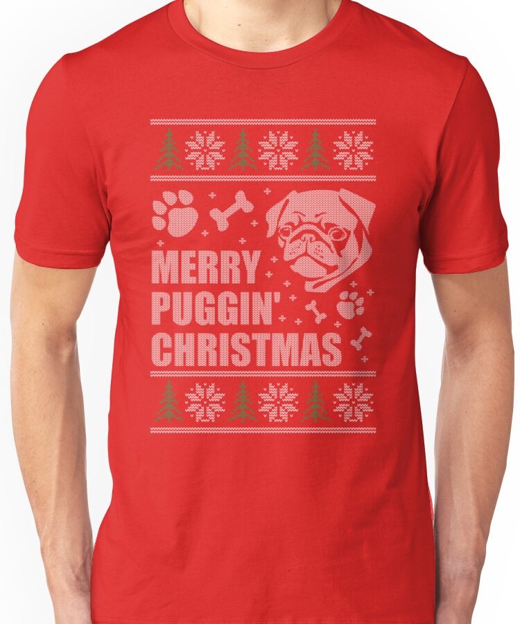from the Artist: Unisex T-Shirt. A Merry Puggin’ Christmas to one and all! Combine two of your favorite things — christmas sweaters and pugs — with this unique design textured to look like a sweater.