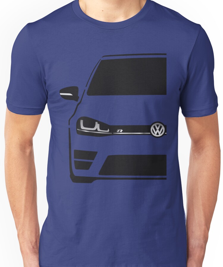 from the Artist: Unisex T-Shirt. MK7 VW Golf R Front View Black Silhouette with half overlap showing the R logo, New updated design 16/10/2016