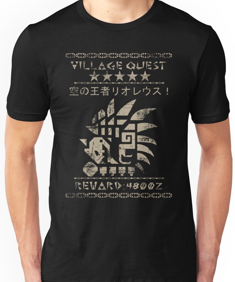 from the Artist: Unisex T-Shirt. Monster Hunter Needed to fight Rathalos! Reward 4800z Kanji reads: “The Wrath of Rathalos”