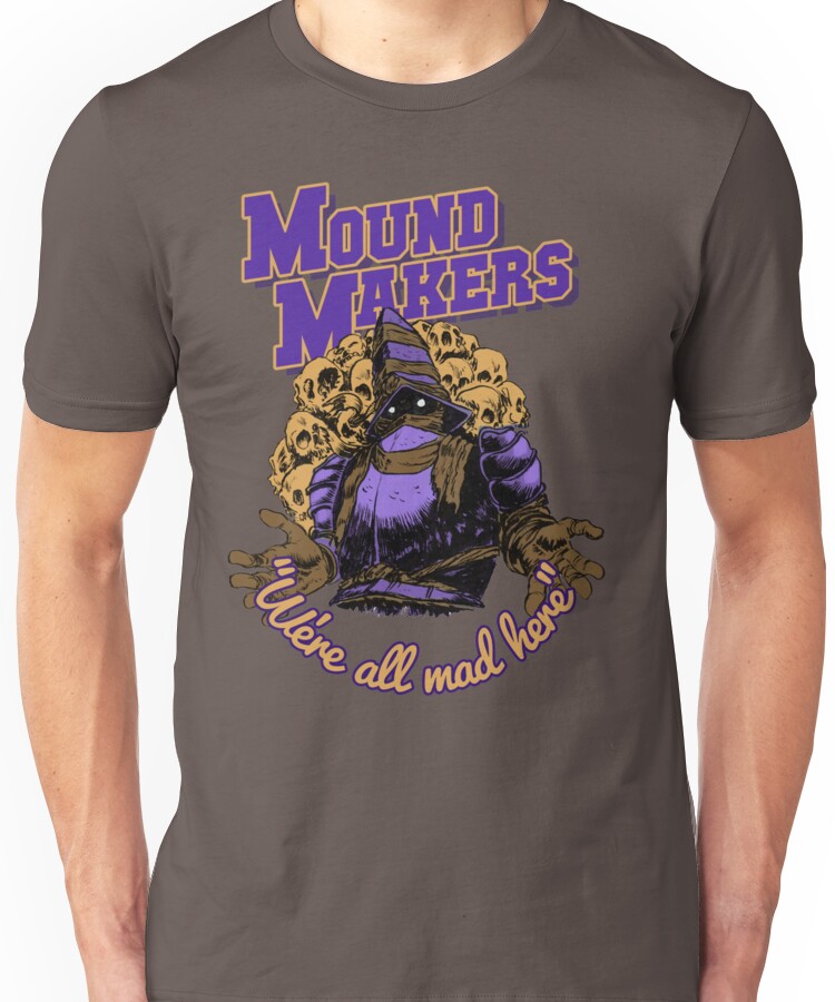 from the Artist: Unisex T-Shirt. Display your allegiance to the mad knights of the Undead Settlement – the Mound-Makers! Win the respect of Hodrick by proudly displaying your commitment to amassing a gruesome pile of corpses stripped of their vertebra.