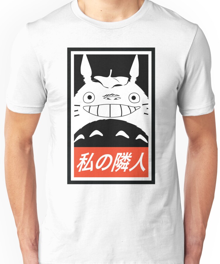 from the Artist: Unisex T-Shirt. Totoro! Totoro! Totoro! _(Japanese text translation (“????” or “Watashi no rinjin”): My neighbor)_