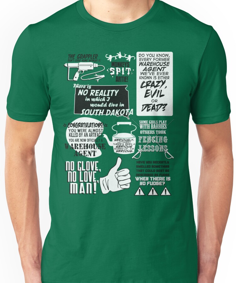 from the Artist: Unisex T-Shirt. For all you Myka fans out there! A shirt dedicated to Miss Bering, featuring some of her best lines. Definitely worth snagging, bagging, and tagging.