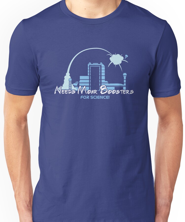 from the Artist: Unisex T-Shirt. This is the meme variant of the “Needs More Boosters” logo inspired by Kerbal Space Program. Moar boosters! For science! “For the original version, go here.”:http://www.redbubble.com/people/jmcdowalldesign/works/13147590-needs-more-boosters !http://ih0.redbubble.net/image.34727247.7590/fig,royal_blue,mens,ffffff.u1.jpg!