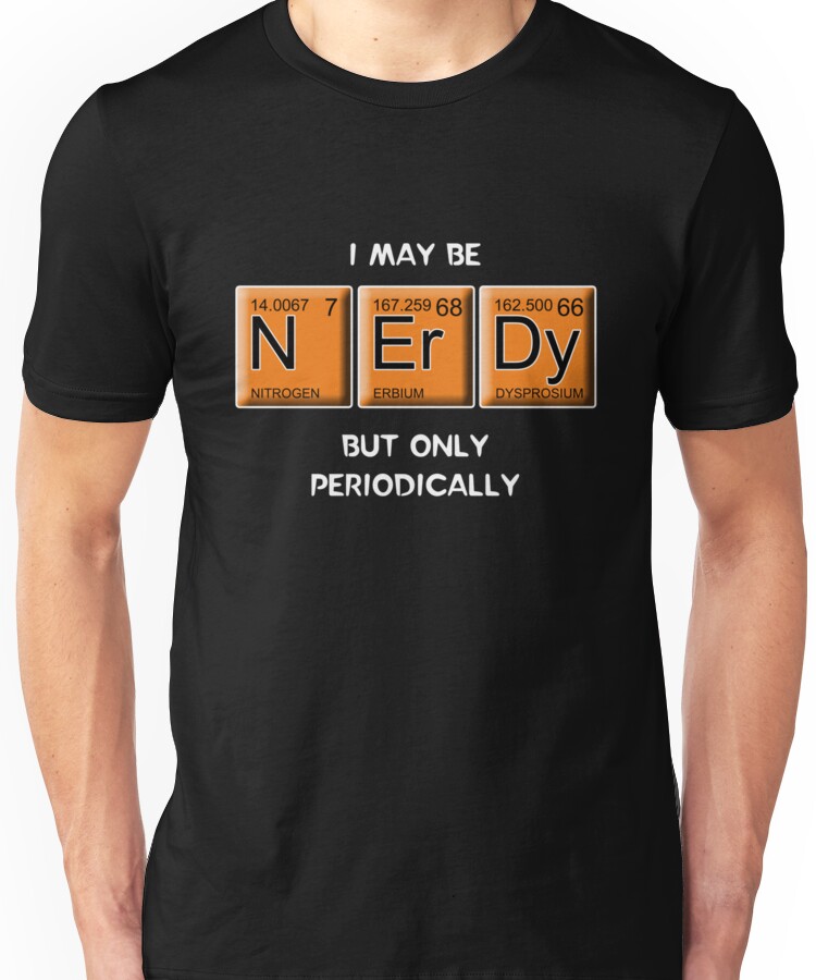 from the Artist: Unisex T-Shirt. T-shirt and merchandise with 5126 views as of November 21, 2014. Thanks for the support! A spoof of the Periodic Table by using real elements to spell the word, “Nerdy”.