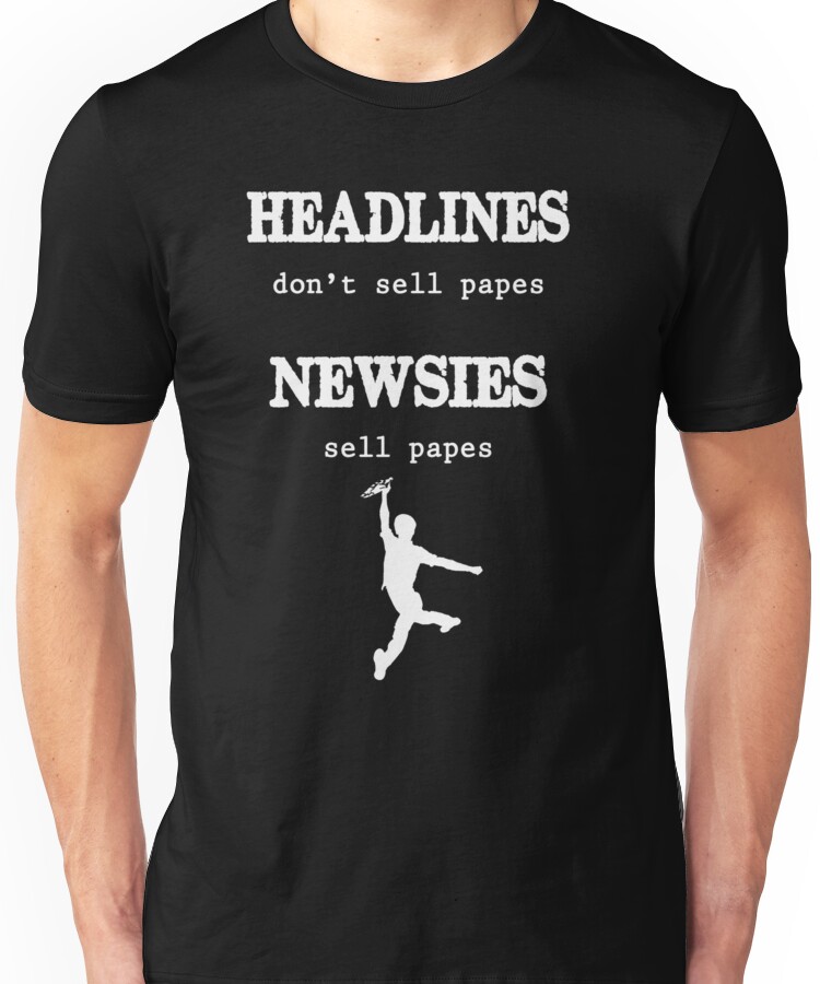 Newsies Sell Papes Unisex T-Shirt NOW $19.5 October 13, 2017 by admin Click Here to Purchase at: $19.5 from the Artist: Unisex T-Shirt.