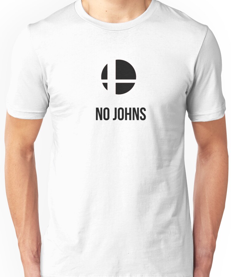 No Johns Unisex T-Shirt NOW $18.93 October 13, 2017 by admin Click Here to Purchase at: $18.93 from the Artist: Unisex T-Shirt. No Johns allowed! Super Smash Bros fans will know!