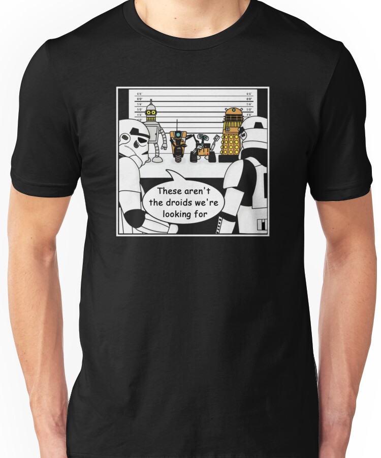 from the Artist: Unisex T-Shirt. In a galaxy far far away, the stupid troopers have still not found the droids they are looking for. Enjoy, Joeken