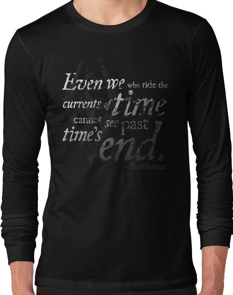 from the Artist: Long Sleeve. Even we who ride the currents of time cannot see past time’s end. – Paarthurnax, The Elder Scrolls V: Skyrim