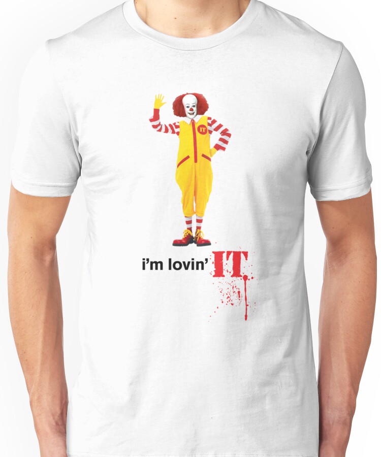 from the Artist: Unisex T-Shirt. I hate clowns, especially Ronald and and I’m sure that if Pennywise was going to start a evil corporation and a marketing campaign to lure unsuspecting victims in he’d use the same line.