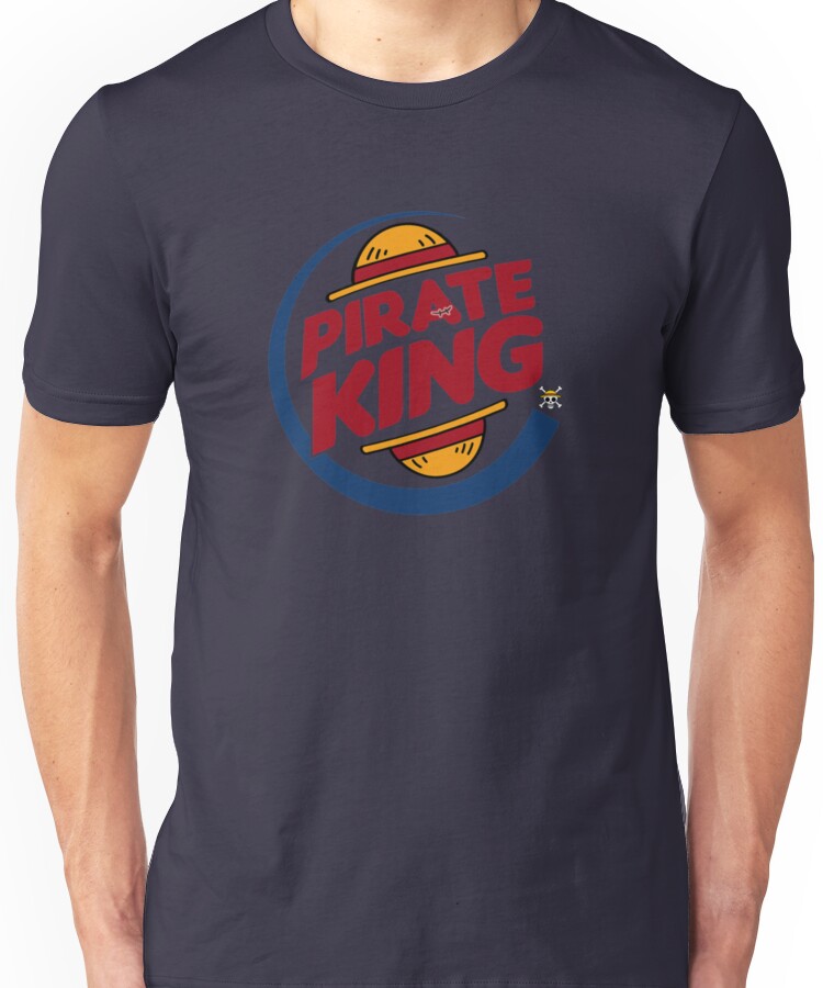 from the Artist: Unisex T-Shirt. You could be the Burger King, but why settle for so little, when you could become the Pirate King! Get this tee, and start your road to become the man with the most freedom in all of the world. Next stop, Grand Line!