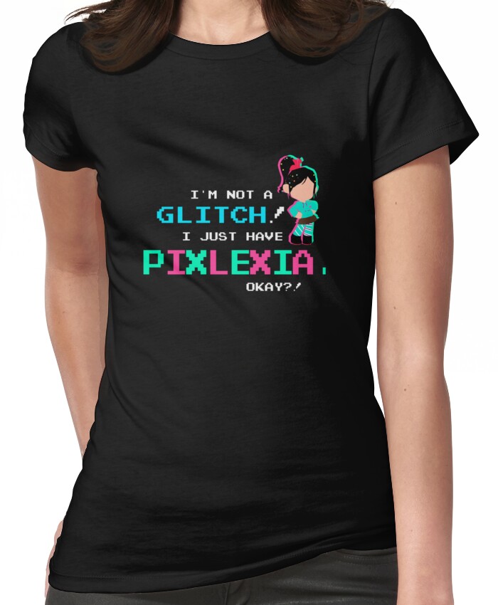 from the Artist: Women’s T-Shirt. *NOW AVAILABLE AS MUGS, NOTEBOOKS, JOURNALS, PILLOWS, LAPTOP SKINS, BAGS AND POSTERS! One of my favorite lines from the movie. “I’m not a glitch! I just have Pixlexia, okay?!”