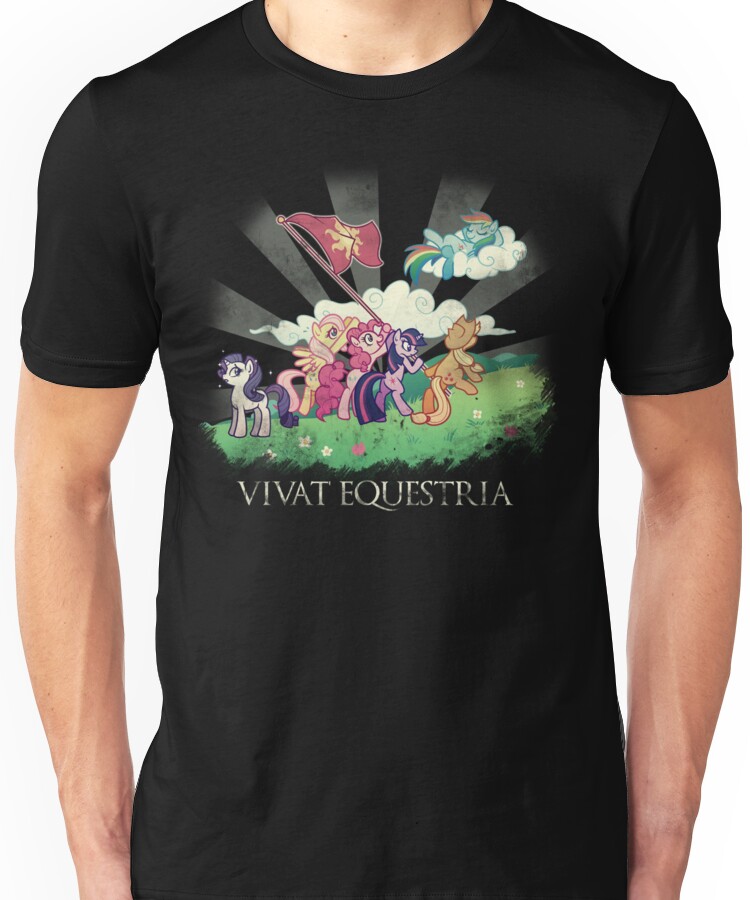 from the Artist: Unisex T-Shirt. A pony-fied parody of the famous Iwo Jima photograph. Each pony is helping (or not) to raise Celestia’s flag in her own way. *NOTE:* The preview image is darker than the final product. This is an issue on RedBubble’s end and something I can’t fix.