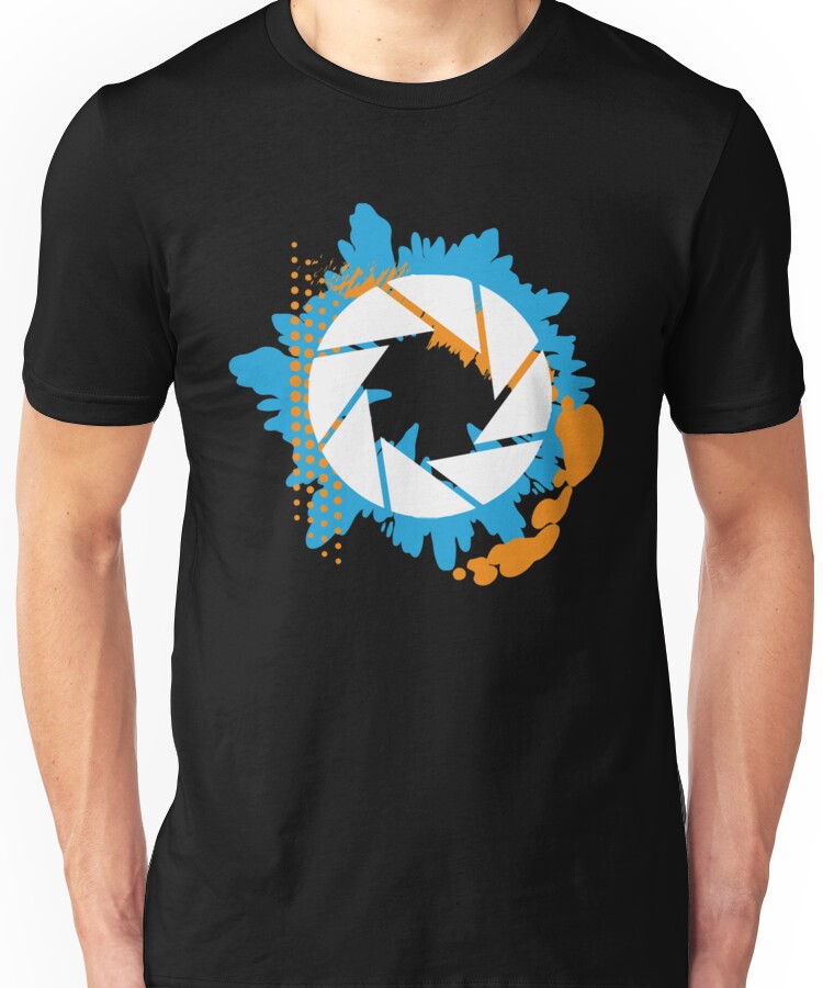 from the Artist: Unisex T-Shirt. Just a little abstract playing around with the Portal colour palette and negative space.