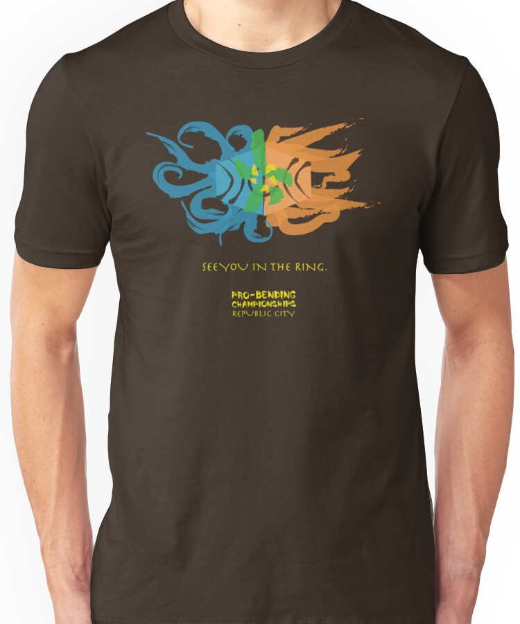 from the Artist: Unisex T-Shirt. (The yellows/oranges will print brighter than displayed) Don’t miss out on the championship games for the most popular sport in Republic City! See you in the ring. Pro-bending features two teams that face off with three benders each. It’s a sport based on skills, cunning, and training, so may the best team win! Follow me on these networks to participate in giveaways, get discounts, catch sneak peaks, and submit ideas! !http://www.thisweekinbeer.com/images/tumblr.png!:http://rachaelmakesshirts.tumblr.com !http://cdn.shopify.com/s/files/1/0060/5392/assets/icon-facebook-small.png!:http://www.facebook.com/rachaelmakesshirts !http://gethuman.com/images/twitter25.png!:http://twitter.com/rachaelnthomas !http://bhamterminal.com/files/2012/02/pinterest-logo-241.png!:http://pinterest.com/schemerachael !http://www.governor.ny.gov/assets/images/instagram-icon.png!:http://instagram.com/rachaelmakesshirts “Click here for more Avatar/Legend of Korra shirts!”:http://www.redbu