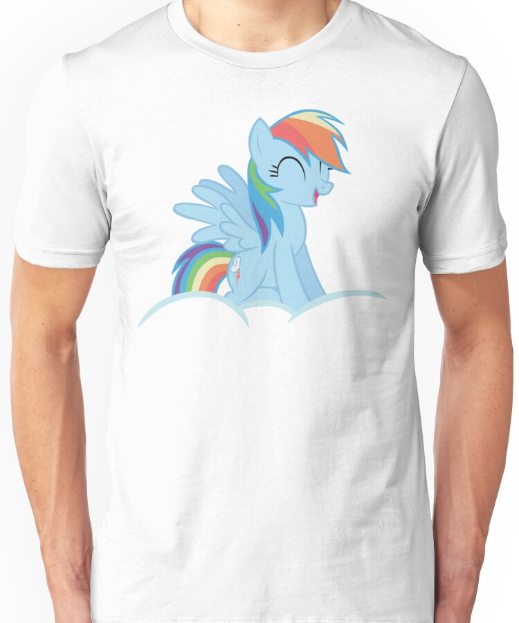 Rainbow Dash Cloud Unisex T-Shirt NOW $19.5 October 13, 2017 by admin Click Here to Purchase at: $19.5 from the Artist: Unisex T-Shirt. Rainbow Keeps her Head In The Clouds!