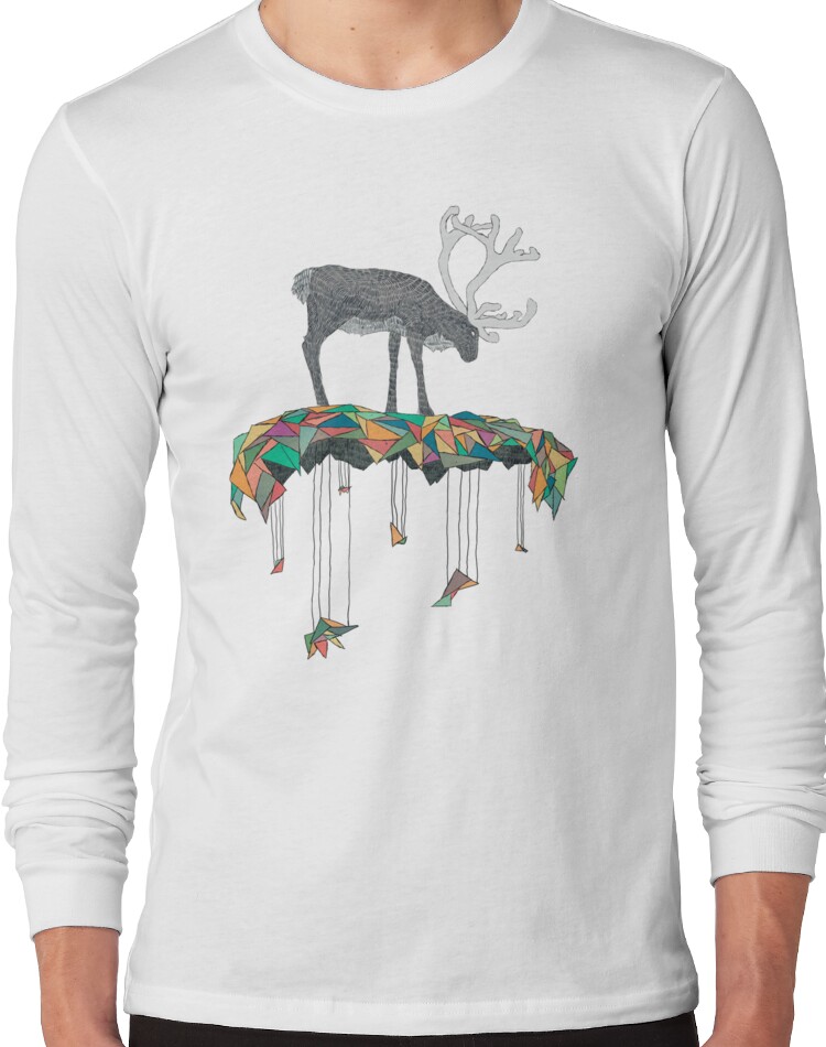 from the Artist: Long Sleeve. A Reindeer on colored triangles.