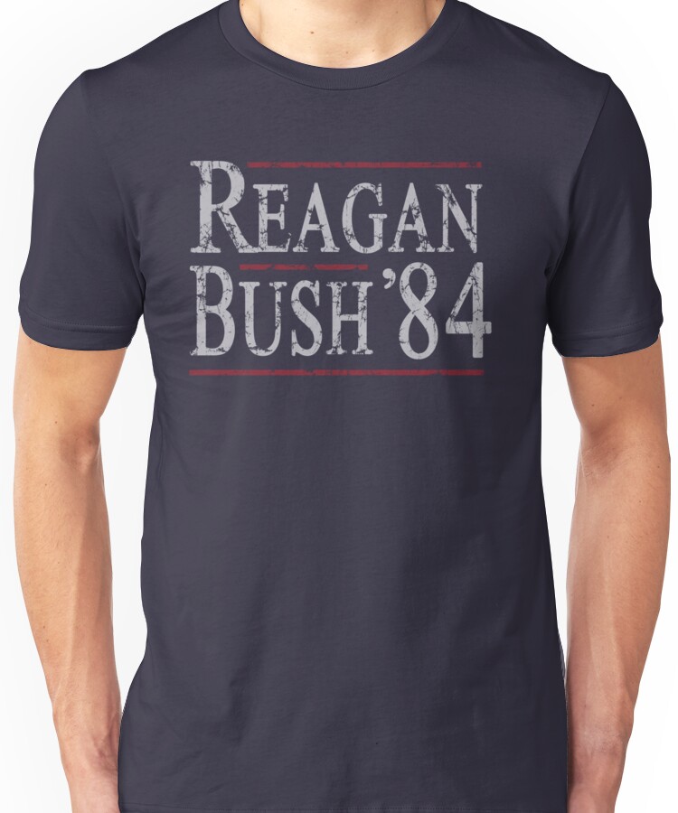 from the Artist: Unisex T-Shirt. Retro Reagan Bush ’84 t shirts and apparel. Go back to the 80’s with our custom Ronald Reagan election shirts and gifts.