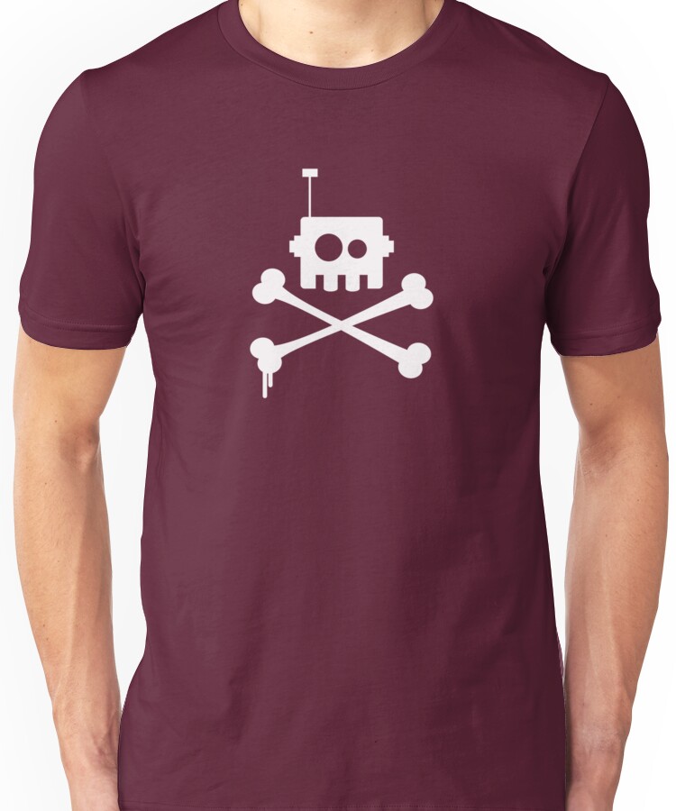 from the Artist: Unisex T-Shirt. 🙂 Make a statement. And wear this T-shirt as you do. Robots and pirates, blended to perfection. jL ” “:http://toomanytights.typepad.com/