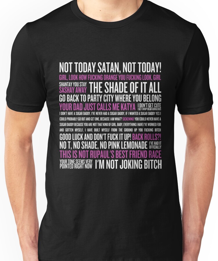 Rupaul’s Drag Race Quotes (black background) Unisex T-Shirt NOW $19.5
