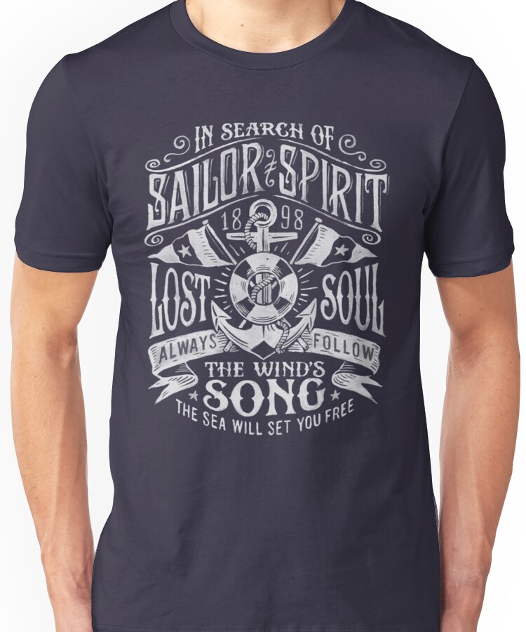 Sailor Spirit Unisex T-Shirt NOW $19.5 October 13, 2017 by admin Click Here to Purchase at: $19.5 from the Artist: Unisex T-Shirt. Hand painted nautical typography lock up.