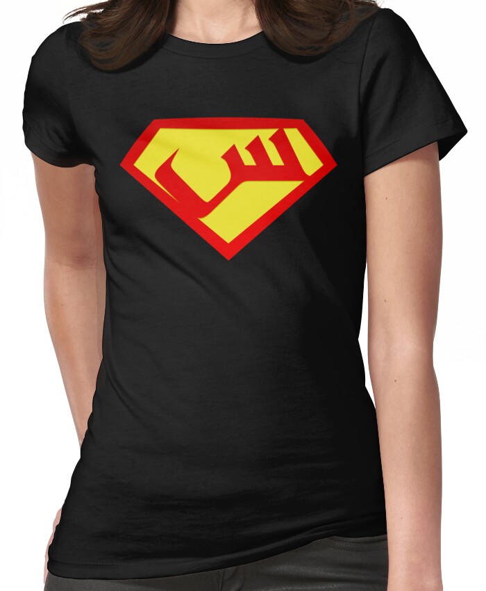 from the Artist: Women’s T-Shirt. “Version 2.0 Here”:http://www.redbubble.com/people/shadi/clothing/1261801-2-seen-shield-v-2-0 I’ve always been a fan of Superman, the powerful simplicity of his story (from Alan Moore’s _Whatever Happened to The Man of Tomorrow?_ : “A perfect man who fell from the sky and did only good”) is only matched by the iconic immortality of his design. This is my variation on the S-shield, using the Arabic letter ? “Seen”, which corresponds to the S. [Updated: slightly so by removing the background effects and simplifying the shape.]