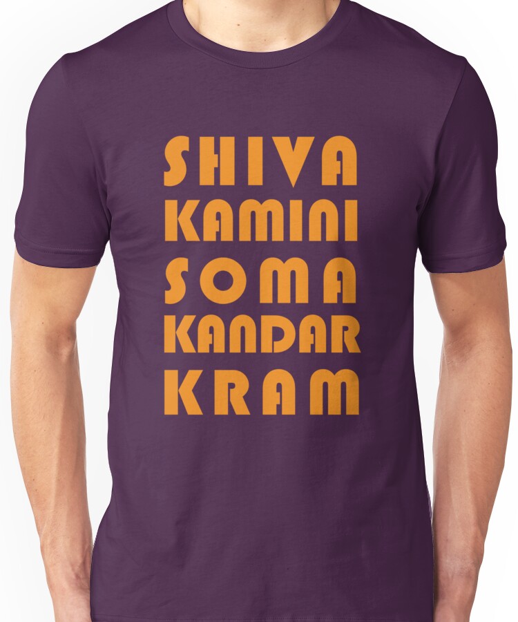 from the Artist: Unisex T-Shirt. From the t.v. show, The League. A reference to Shivakamini Somakandarkram and the Shiva Bowl. “Shiva Blast in action” youtube:http://www.youtube.com/watch?v=trtfyNvS30I “Shivakamini Somakandarkram song” youtube:http://www.youtube.com/watch?v=QYw7Sct3U4c !http://images2.wikia.nocookie.net/__cb20111216183119/theleague/images/b/b6/273233_100002603145849_2184379_n.jpeg!