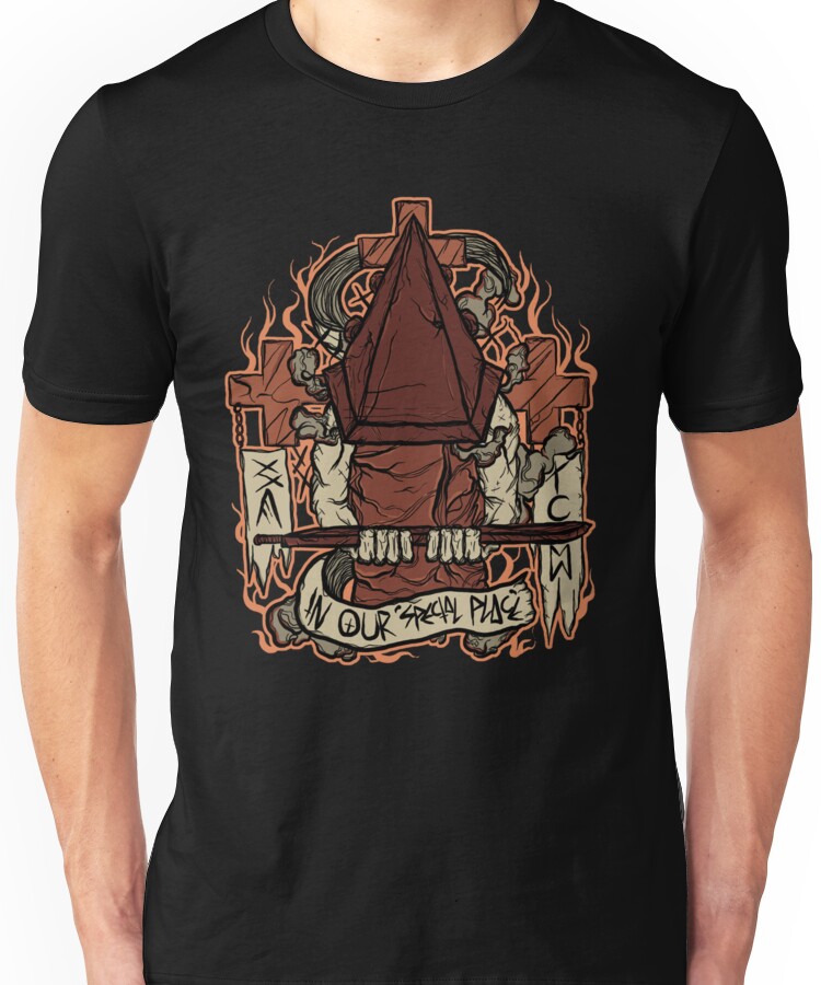 from the Artist: Unisex T-Shirt. Red Pyramid Thing/Pyramid Head/Bogeyman Silent Hill 2 insp. design 🙂 Nathan nathanbayfield@live.com