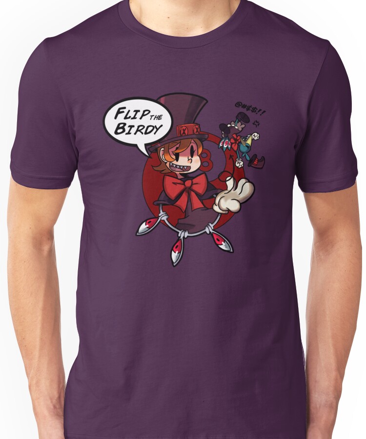 Skullgirls(Peacock)-Flip the Birdie Unisex T-Shirt NOW $18.53