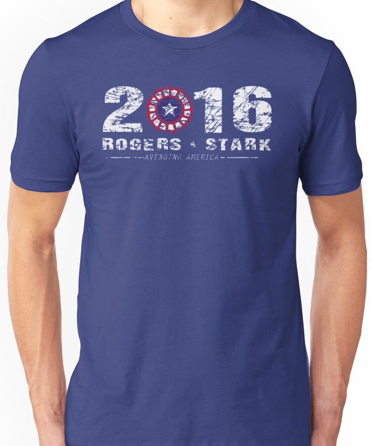 from the Artist: Unisex T-Shirt. Stark & Rogers: 2016 Avenging America. Who will you vote for in the 2016 elections? Im in on Stark & Rogers! The will be the election on the year. Show your support and Avenge America. Wear it, Share it and Show it.