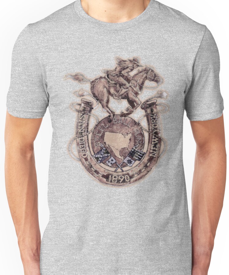 from the Artist: Unisex T-Shirt. I bring to you the Infamous Steel Ball Run race Icon/logo, Ive just started reading this arc of the story and ive quickly fallen in love with the main symbol and decided to bring it to everyone else.