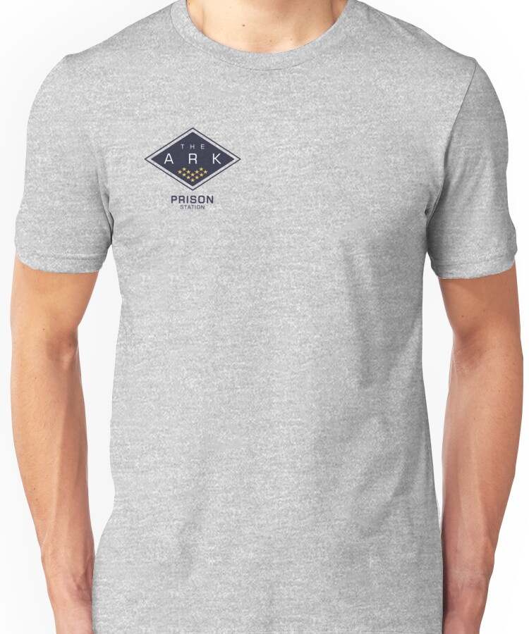 from the Artist: Unisex T-Shirt. This is a T-shirt for the Prison Station, on The Ark. The Ark is a fictional station made up of 12 space stations in the Books and TV Series, The 100. Heres a link for some more information about the Ark and stations (spoiler alert if you havent seen it): http://the100.wikia.com/wiki/The_Ark Also available are T-shirts for various other stations, and some of the characters.