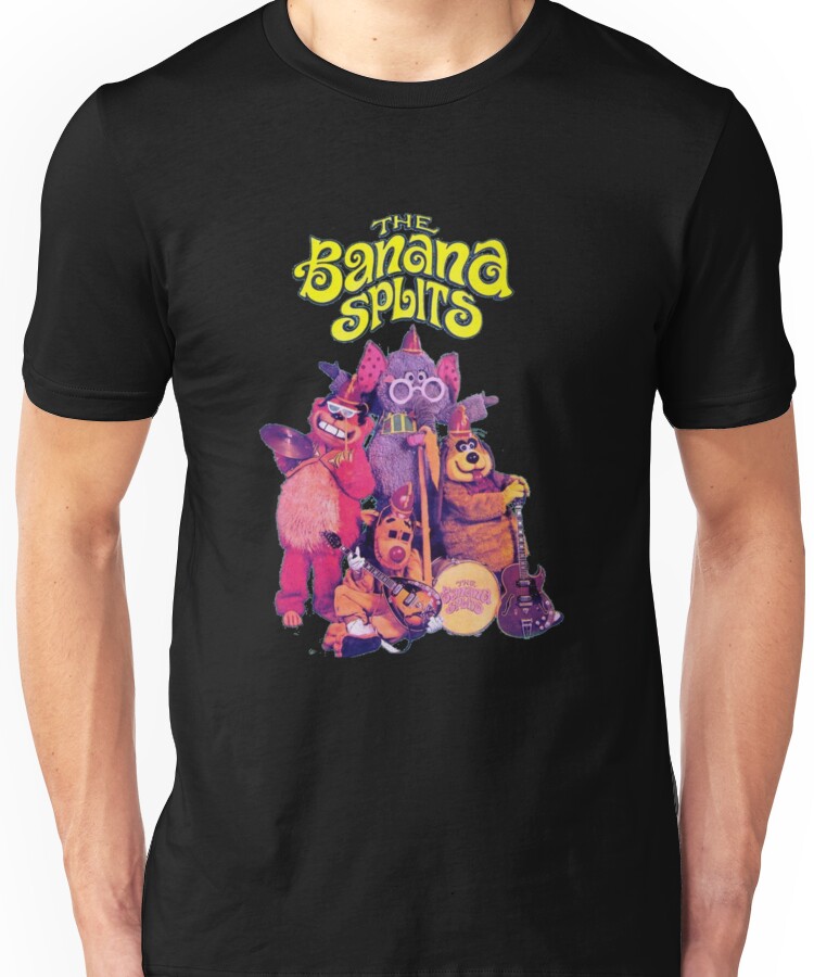 from the Artist: Unisex T-Shirt. One banana, two banana, three banana, four Four bananas make a bunch and so do many more. Over hill and highway the banana buggies go Comin’on to bring you the Banana Splits show Makin’ up a mess of fun, makin’ up a mess of fun Lots of fun for everyone Tra la la, la la la la Tra la la, la la la la Tra la la, la la la la Tra la la, la la la la