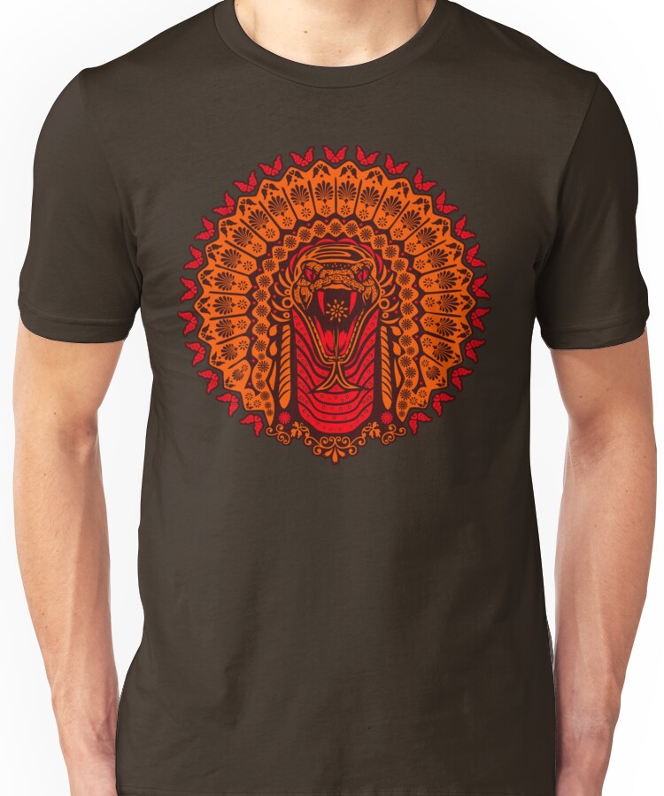 from the Artist: Unisex T-Shirt. *Chief*, is the head of a family or clan *The serpent*, or snake, is one of the oldest and most widespread mythological symbols. The word is derived from Latin serpens, a crawling animal or snake. Snakes have been associated with some of the oldest rituals known to humankind and represent dual expression of good and evil. _The Hopi people of North America performed an annual snake dance to celebrate the union of Snake Youth (a Sky spirit) and Snake Girl (an Underworld spirit) and to renew fertility of Nature. During the dance, live snakes were handled and at the end of the dance the snakes were released into the fields to guarantee good crops. “The snake dance is a prayer to the spirits of the clouds, the thunder and the lightning, that the rain may fall on the growing crops..” In other cultures snakes symbolized the umbilical cord, joining all humans to Mother Earth. The Great Goddess often had snakes as her familiars – sometimes twining around her sacred staff,